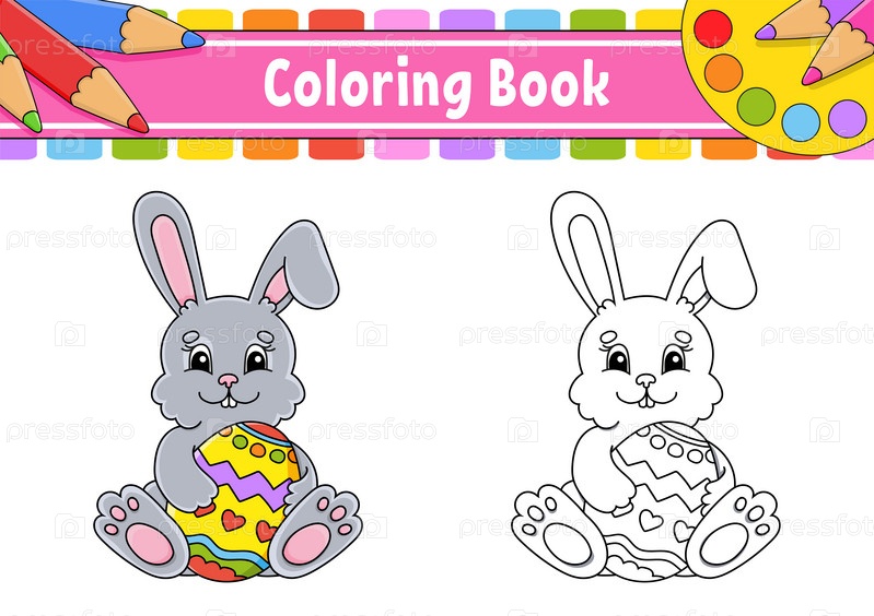 Раскраска для детей. Персонаж мультфильма. Векторная иллюстрация. Черный контурный силуэт. Пасхальная тема. Изолированный на белом фоне