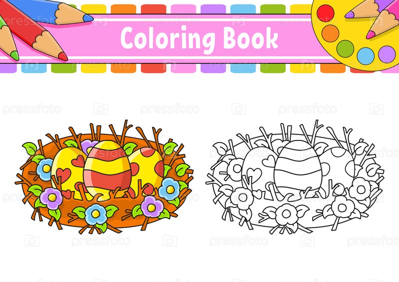 Раскраска для детей. Персонаж мультфильма. Векторная иллюстрация. Черный контурный силуэт. Пасхальная тема. Изолированный на белом фоне