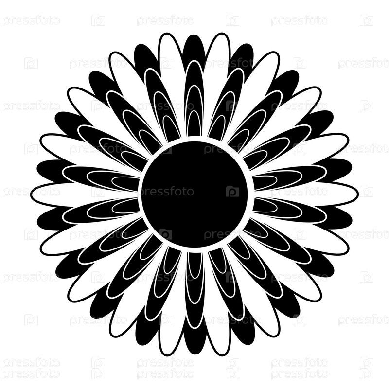Черно-белый силуэт цветка в абстрактном стиле