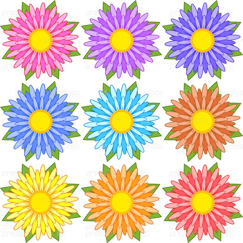 Набор из полосатых цветов синего, красного, желтого, белого, розового, оранжевого, фиолетового цветов