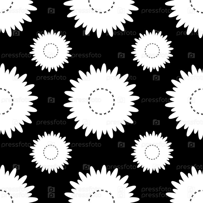 Бесшовный черно-белый узор из силуэтов цветов