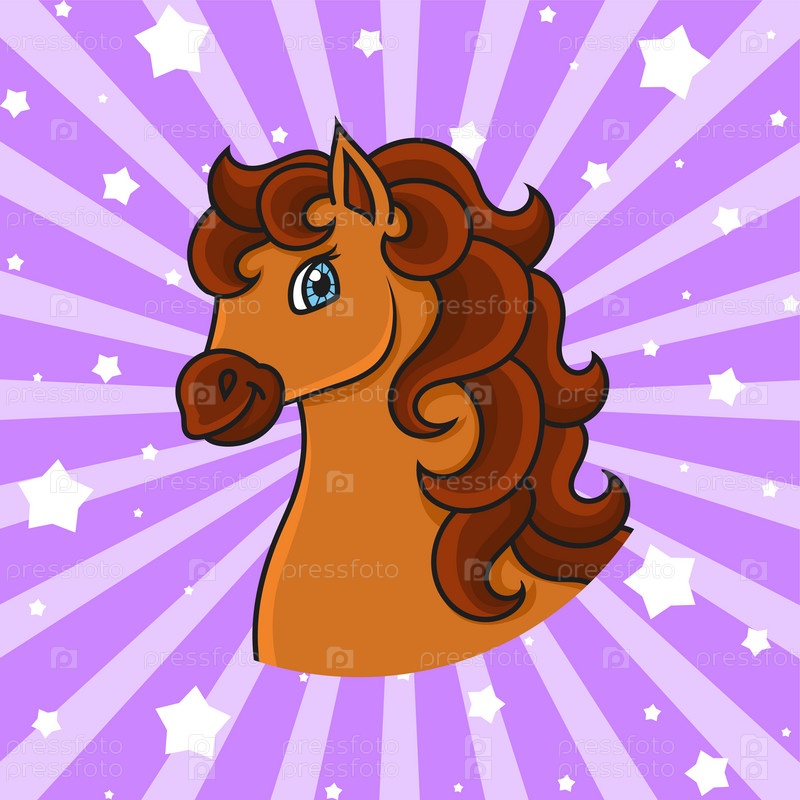 Милый персонаж мультфильма. Лошадь животное. Красочная векторная иллюстрация. Изолированный на цветном фоне. Шаблон для вашего дизайна