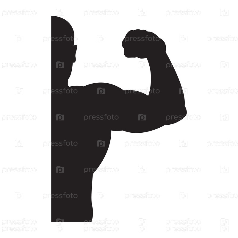 Культурист сильный человек. Черный силуэт. Элемент дизайна. Векторная иллюстрация изолирована на белом фоне. Шаблон для книг, наклеек, плакатов, карт, одежды