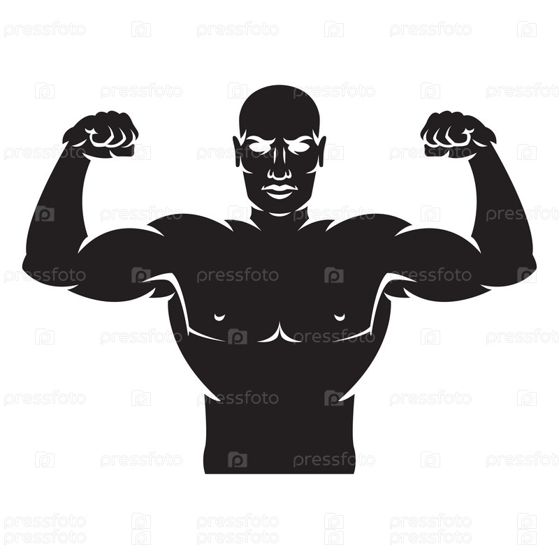 Культурист сильный человек. Черный силуэт. Элемент дизайна. Векторная иллюстрация изолирована на белом фоне. Шаблон для книг, наклеек, плакатов, карт, одежды