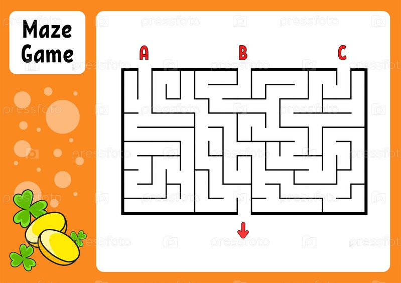 Прямоугольный лабиринт. Игра для детей. Три входа, один выход. Образовательный рабочий лист. Головоломка для детей. Загадка лабиринта. Цветная векторная иллюстрация. Найдите правильный путь. персонаж мультфильма