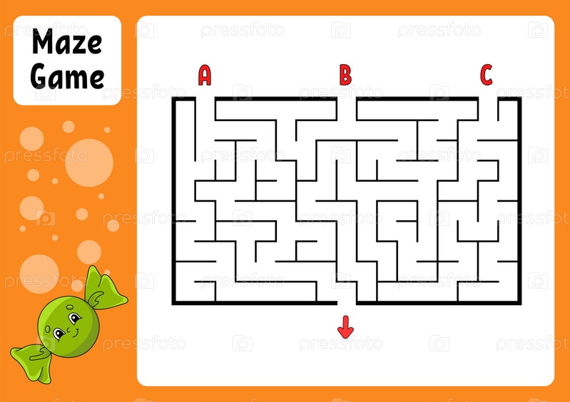 Прямоугольный лабиринт. Игра для детей. Три входа, один выход. Образовательный рабочий лист. Головоломка для детей. Загадка лабиринта. Найдите правильный путь. персонаж мультфильма. Векторная иллюстрация