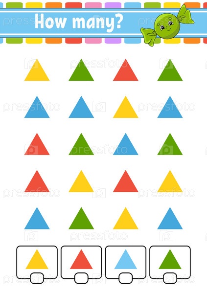 Игра-подсчет для детей. Счастливые персонажи. Изучение математики. Сколько объектов на картинке. Рабочий лист по образованию. С местом для ответов. Изолированная векторная иллюстрация в милом мультяшном стиле