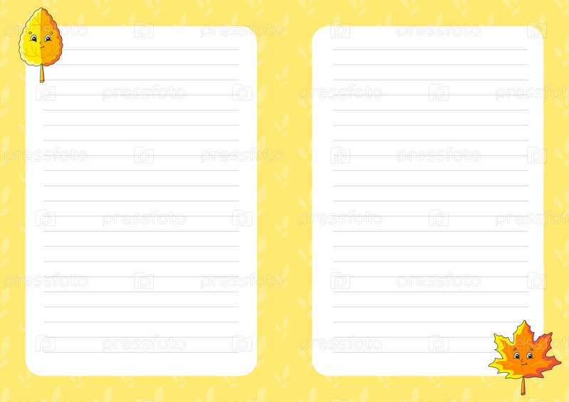Шаблон цветного листа для заметок. Бумажная страница для журнала, блокнота, дневника, писем, расписания, органайзера. Милый персонаж мультфильма. Линованный лист. Векторная иллюстрация