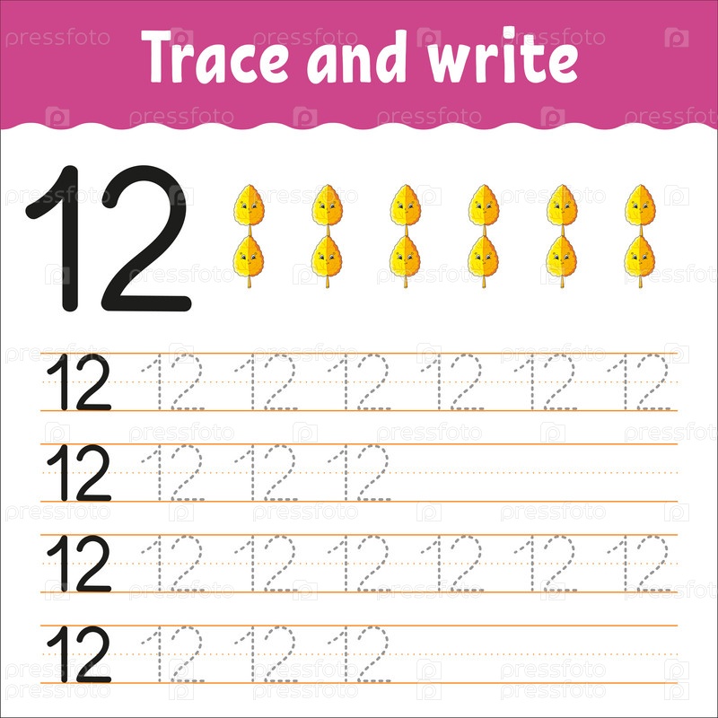 Изучайте цифры. Обводка и письмо. Практика письма. Изучение цифр для детей. Образовательный развивающий рабочий лист. Цветная страница с заданиями. Векторная иллюстрация