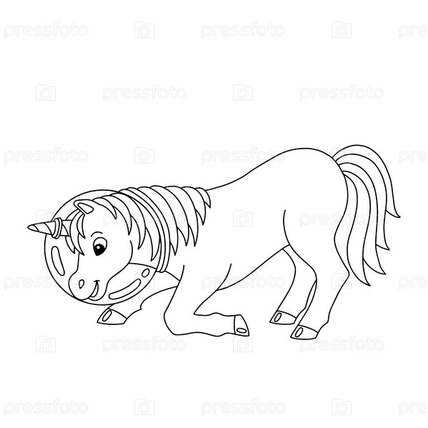 Волшебный фея единорог. Милая лошадь. Страница раскраски для детей. Персонаж в мультяшном стиле. Векторная иллюстрация на белом фоне