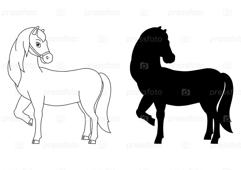 Милая лошадь. Фермерское животное. Страница раскраски для детей. Персонаж в мультяшном стиле. Векторная иллюстрация на белом фоне
