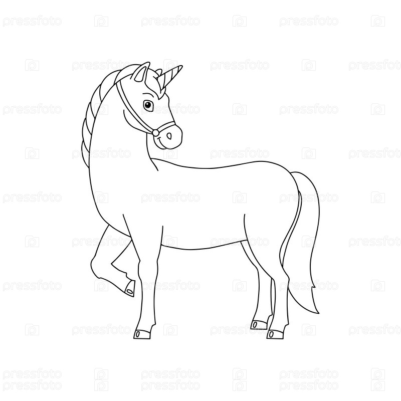 Волшебный фея единорог. Страница раскраски для детей. Персонаж в мультяшном стиле. Векторная иллюстрация на белом фоне