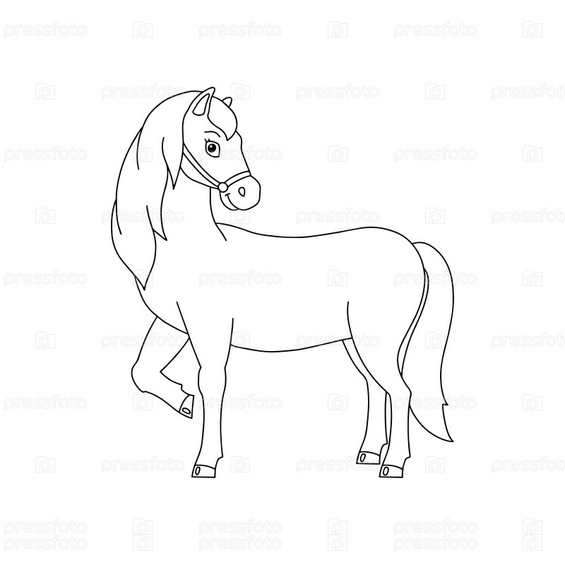 Милая лошадь. Фермерское животное. Страница раскраски для детей. Персонаж в мультяшном стиле. Векторная иллюстрация на белом фоне