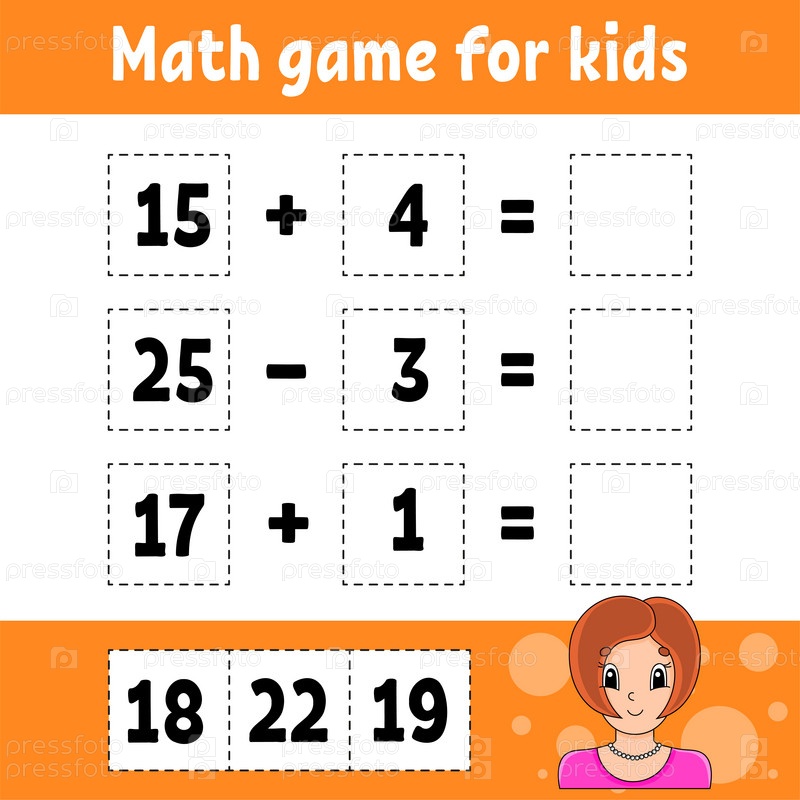 Математическая игра для детей. Образовательный развивающий рабочий лист. Страница с заданиями с картинками. Игра для детей. Цветная изолированная векторная иллюстрация. Забавный персонаж. Мультяшный стиль