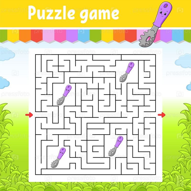 Квадратный лабиринт. Игра для детей. Головоломка для детей. Загадка лабиринта. Цветная векторная иллюстрация. Найдите правильный путь. Изолированная векторная иллюстрация. персонаж мультфильма