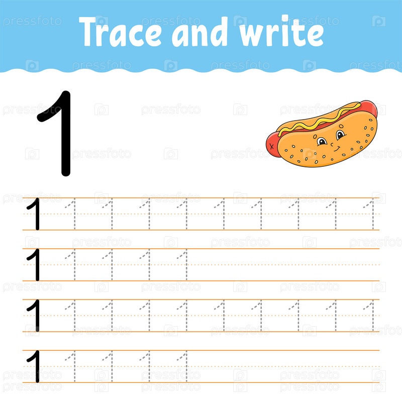 Изучайте цифры. Обводка и письмо. Практика письма. Изучение цифр для детей. Образовательный развивающий рабочий лист. Цветная страница с заданиями. Изолированная векторная иллюстрация в милом мультяшном стиле