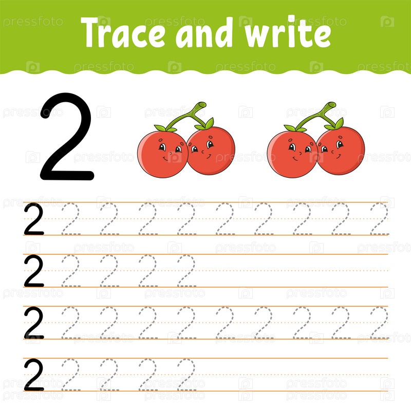 Изучайте цифры. Обводка и письмо. Практика письма. Изучение цифр для детей. Образовательный развивающий рабочий лист. Цветная страница с заданиями. Изолированная векторная иллюстрация в милом мультяшном стиле