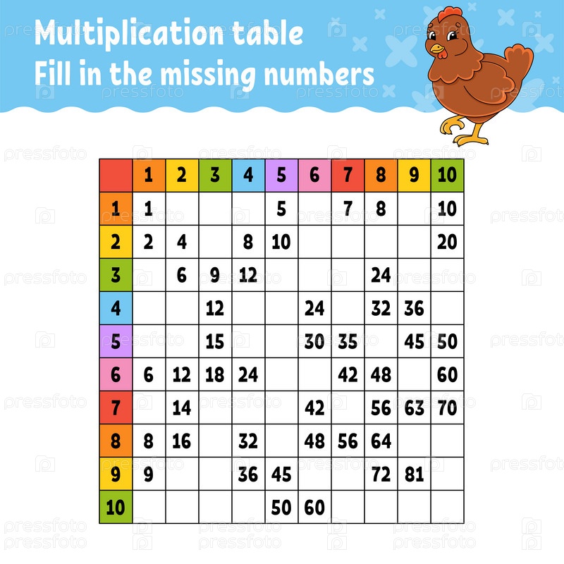 Вставьте пропущенные цифры. Изучение таблицы умножения. Практика письма. Образовательный развивающий рабочий лист. Цветная страница с заданиями. Игра для детей. Пасхальная тема