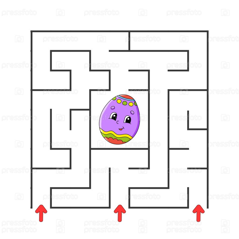 Квадратный лабиринт. Игра для детей. Головоломка для детей. Персонаж мультфильма. Загадка лабиринта. Цветная векторная иллюстрация. Найди правильный путь. Развитие логического и пространственного мышления