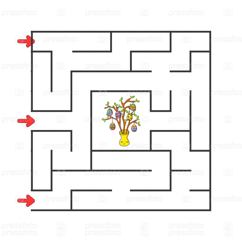 Квадратный лабиринт. Игра для детей. Головоломка для детей. Персонаж мультфильма. Загадка лабиринта. Цветная векторная иллюстрация. Найди правильный путь. Развитие логического и пространственного мышления