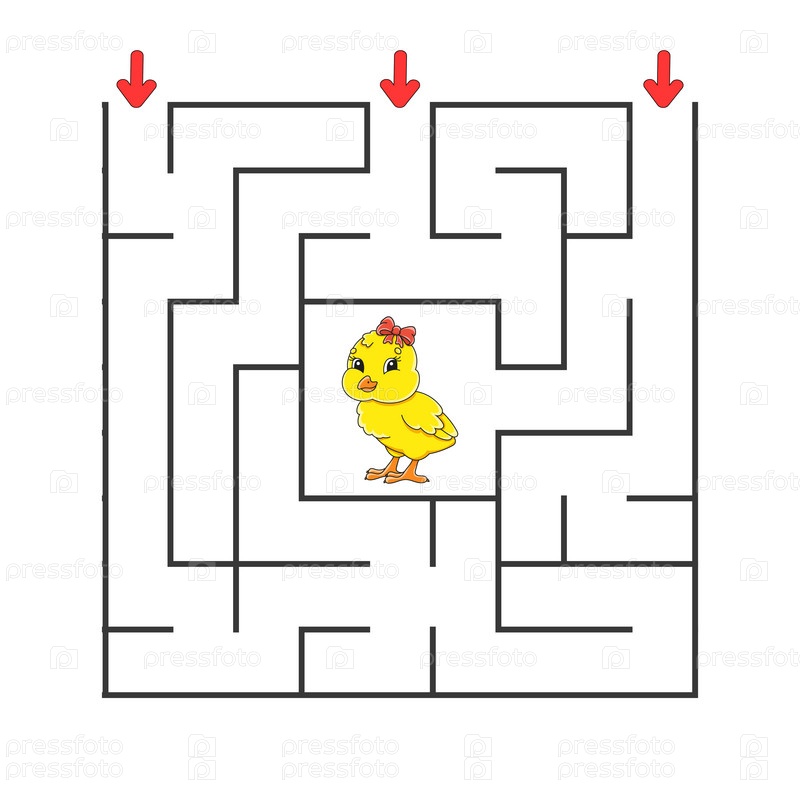 Квадратный лабиринт. Игра для детей. Головоломка для детей. Персонаж мультфильма. Загадка лабиринта. Цветная векторная иллюстрация. Найди правильный путь. Развитие логического и пространственного мышления