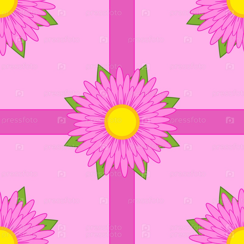 Бесшовный узор из розовых цветов с лентами