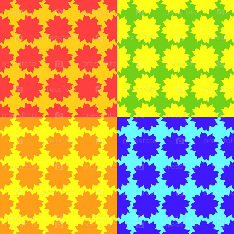 Набор ярких бесшовных узоров синего, зеленого, красного, желтого, оранжевого цветов