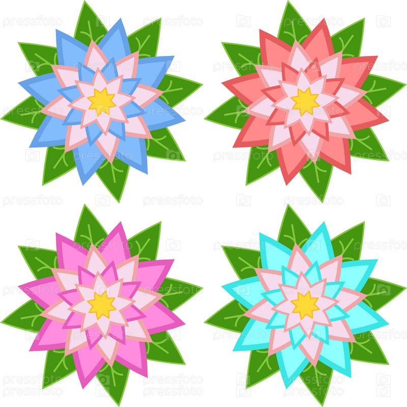 Набор из синего, розового, красного, светло-голубого цветка, изолированных на белом фоне. Подходит для дизайна