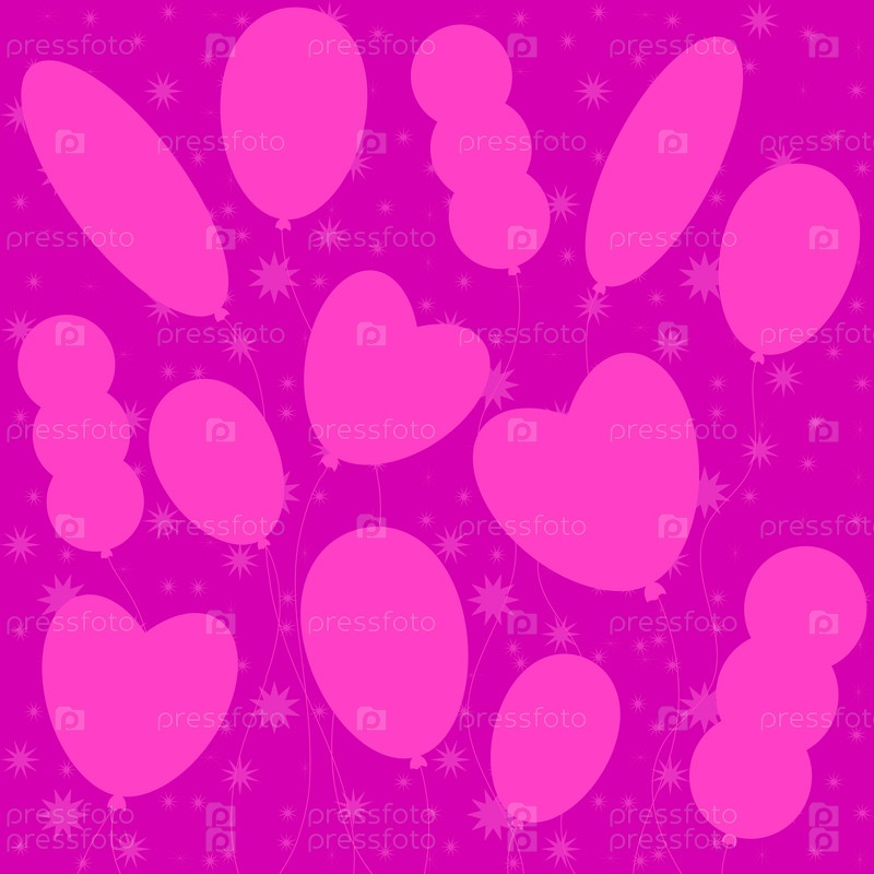 Плоские однотонные силуэты воздушных шаров на розовом фоне. Подходит для поздравительной открытки