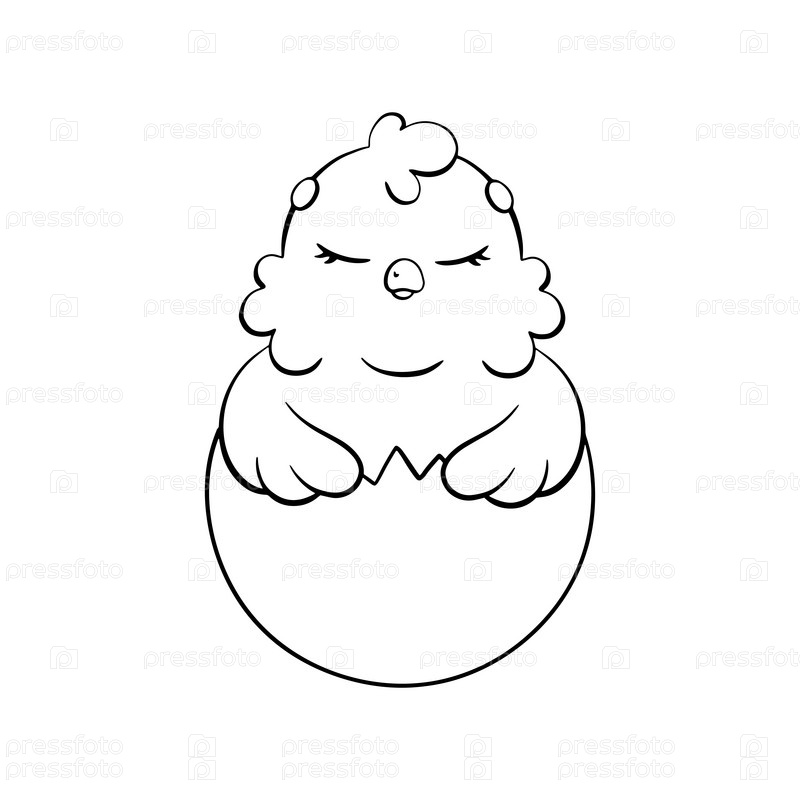 Раскраска для детей. Милый спящий цыпленок. Цифровой штамп. Персонаж в мультяшном стиле. Векторная иллюстрация на белом фоне