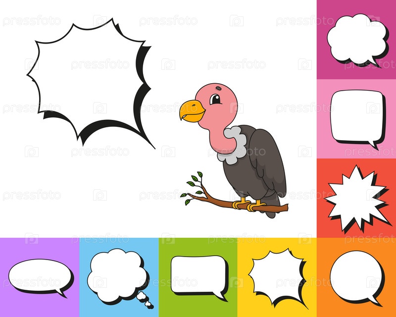Речевой пузырь разной формы. С милым мультяшным персонажем. Нарисованный от руки. Мыслящие шары. Изолированные на белом фоне. Векторная иллюстрация