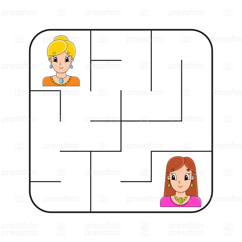 Простой квадратный лабиринт для малышей. С милыми персонажами мультфильмов. Изолирован на белом фоне. Векторная иллюстрация