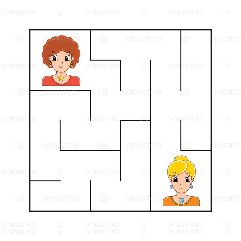Простой квадратный лабиринт для малышей. С милыми персонажами мультфильмов. Изолирован на белом фоне. Векторная иллюстрация