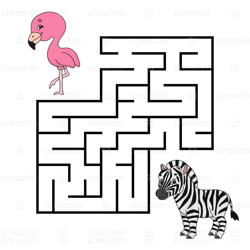 Квадратный лабиринт. Игра для детей. Головоломка для детей. Загадка лабиринта. Персонаж мультфильма. Изолирован на белом фоне. Векторная иллюстрация