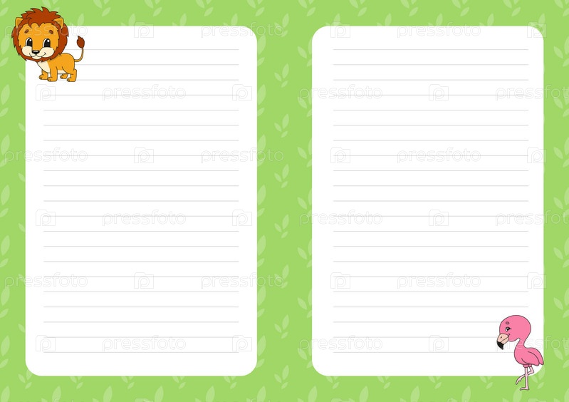 Шаблон цветного листа для заметок. Бумажная страница для журнала, блокнота, дневника, писем, расписания, органайзера. Милый персонаж мультфильма. Линованный лист. Векторная иллюстрация