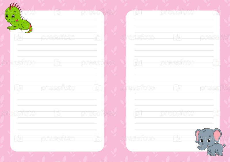 Шаблон цветного листа для заметок. Бумажная страница для журнала, блокнота, дневника, писем, расписания, органайзера. Милый персонаж мультфильма. Линованный лист. Векторная иллюстрация