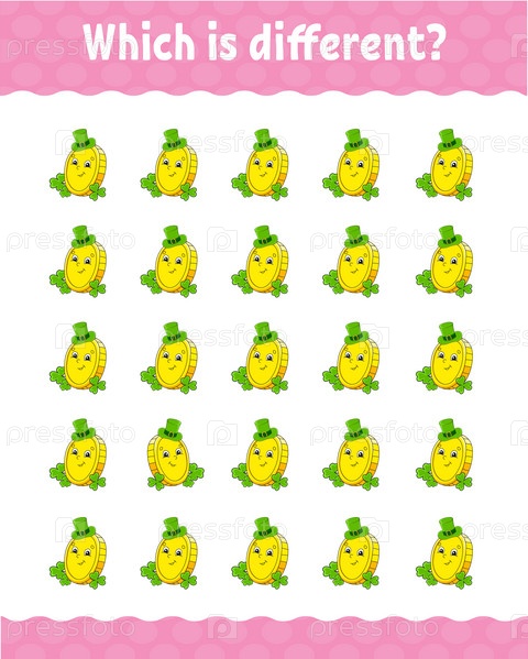 Что отличается. Развивающий рабочий лист для детей. Страница с заданиями. Мультяшный стиль. Векторная иллюстрация