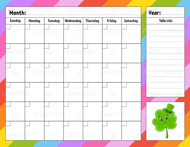 Планировщик на неделю. Яркий красочный пустой шаблон для печати. Векторная иллюстрация