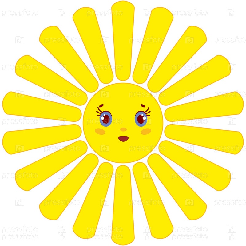 Мультяшное желтое солнце с лучами на белом фоне