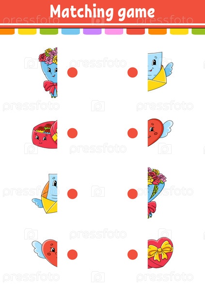 Игра на соответствие. Нарисуй линию. Образовательный развивающий рабочий лист. Страница с заданиями с цветными картинками. Загадка для детей. Милый персонаж. Мультяшный стиль. Векторная иллюстрация