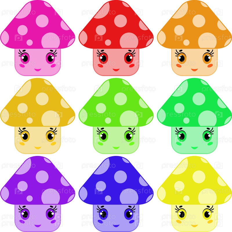 Мультяшные грибы разных цветов