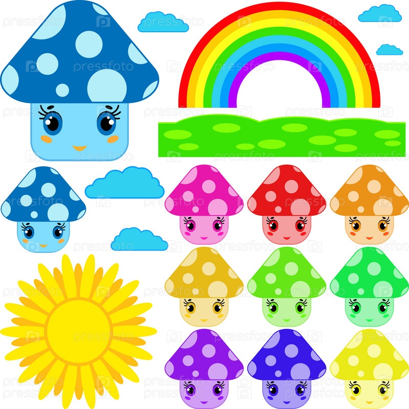 Набор мультяшных грибов разных цветов