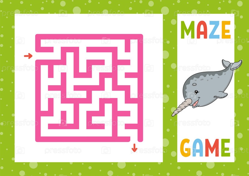 Квадратный лабиринт. Игра для детей. Головоломка для детей. Счастливый персонаж. Головоломка лабиринта. Цветная векторная иллюстрация. Найдите правильный путь. Изолированная векторная иллюстрация. Мультяшный стиль