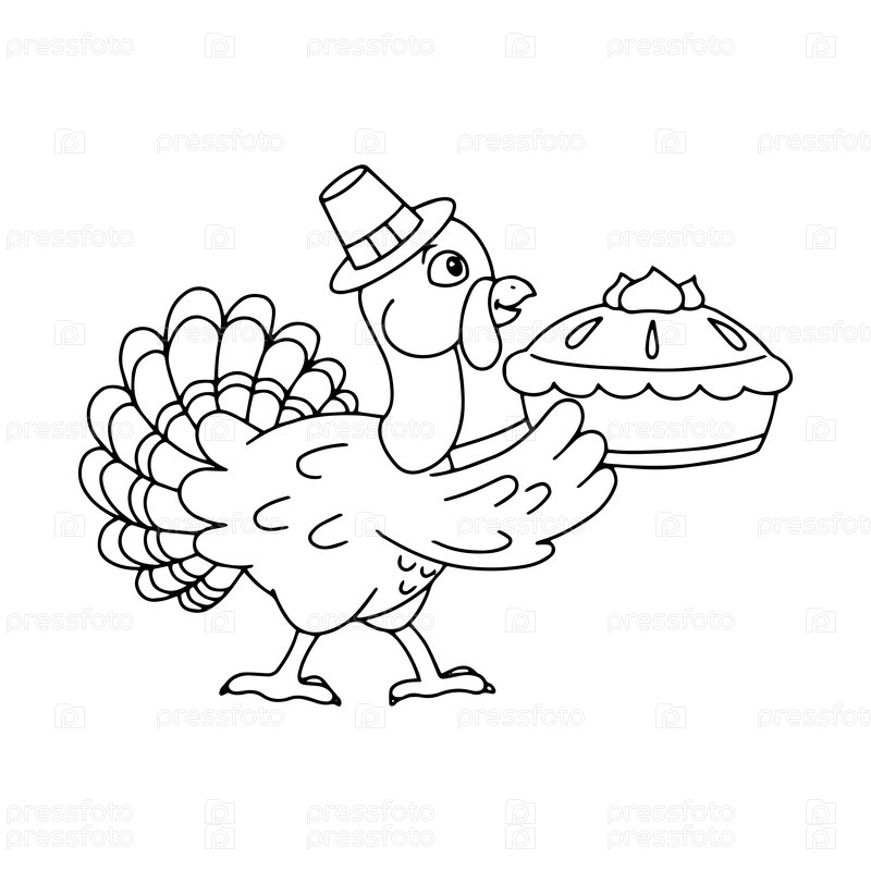 Милая индейка. Страница раскраски для детей. Персонаж в мультяшном стиле. Векторная иллюстрация на белом фоне