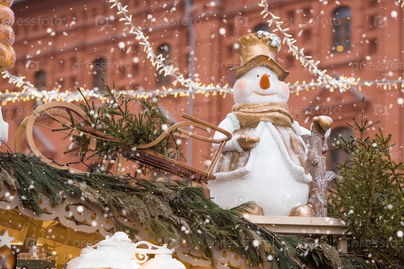 Новый год 2025. Новогодние украшения и игрушки на улицах города. Рождественские праздники, зимний новогодний декор в центре Москвы