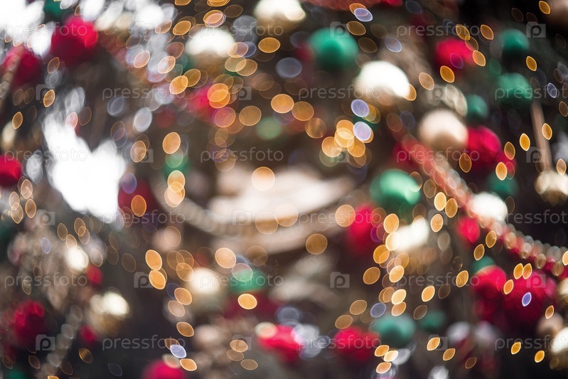 Абстрактные размытые блики сбоку на елке в теплых оттенках желтого. Красивый новогодний фон 2025