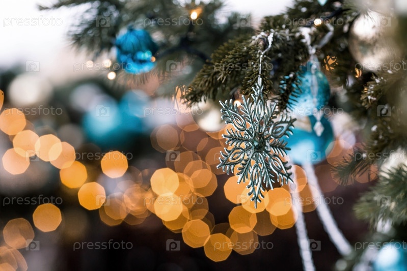 Красивое праздничное украшение снежинки на елку. Крупный план. Красивый рождественский фон. Концепция украшений и декора на новый год. Новогодняя открытка 2025