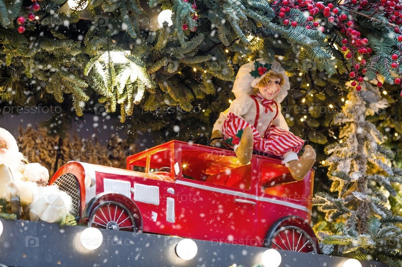 Новый год 2025. Новогодние украшения и игрушки на улицах города. Рождественские праздники, зимний новогодний декор в центре Москвы