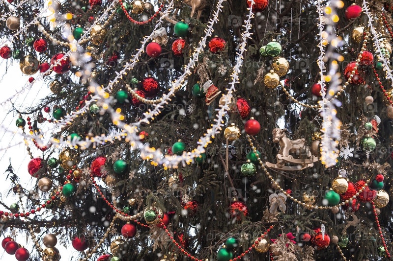 Новый год 2025. Новогодние украшения и игрушки на улицах города. Рождественские праздники, зимний новогодний декор в центре Москвы