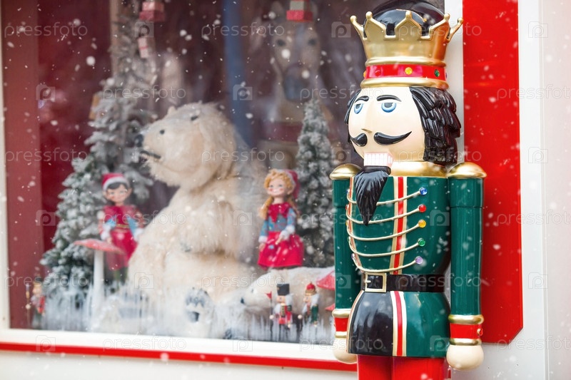 Новый год 2025. Новогодние украшения и игрушки на улицах города. Игрушечный солдатик, Щелкунчик. Балет Чайковского. Зимний новогодний декор в центре Москвы